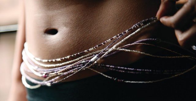 In some parts of Africa waist beads take on healing qualities. This is achieved when small stones (it can be semi-precious stones) are added to it. Together with the stones they conjure some sort mysticism which helps solve or heal the wearer in certain situations. And in West Africa women wear waist beads with bells on them and when they walked it make a jingling noise. Amongst the Akans especially Ashantis, waist beads is used as an indicator against obesity.