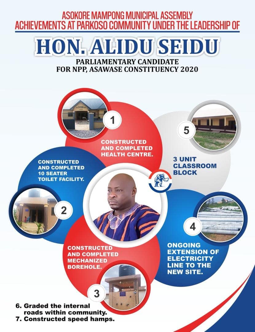 The MCE for Asokore Mampong Municipal Hon. Alidu Seidu has highlighted some achievements he has been able to do with regards to Parkoso as the current MCE for the municipality.