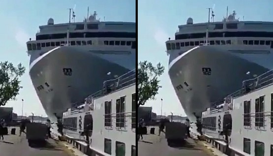 In the video circulating online, people could been running for their lives when the ship crashed.