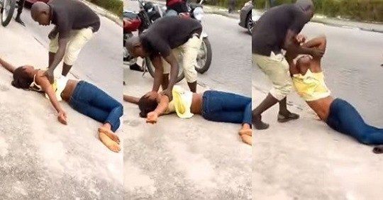 Drama unfolded between two love birds in trending video we have sighted social media where a lady was seen lying on the floor.