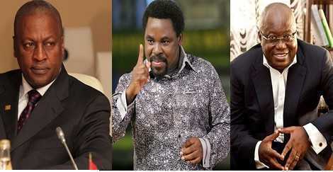Latest information reaching our office at the moment indicates that, top African and international Prophet, T B Joshua has revealed that outcome of the impending elections in Ghana. According to the top prophet, the National Democratic Congress (NDC) is likely to win the elections in the second round.