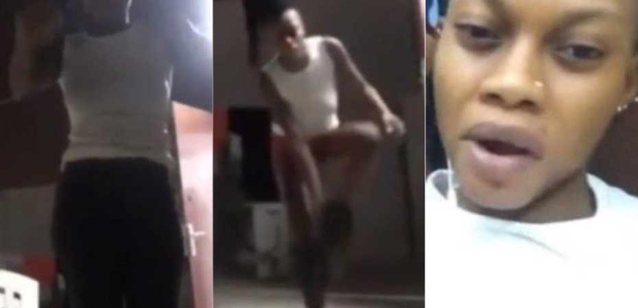 A Ghanaian slay queen who has been identified as Farida, stripped on her Facebook live to rain curses on her ex-boyfriend who she claims leaked her sex tape.
