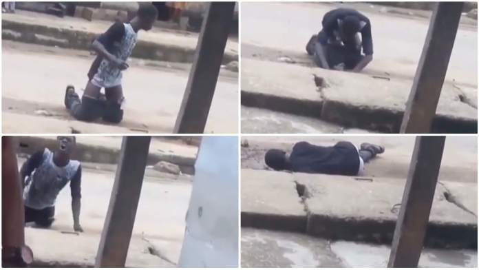 In the video, the unidentified young man, is seen on his knees screaming “I am a yahoo boy” then he smashes his fingers against the hard earth as though, he was typing out some letter to mother earth then he’s heard screaming again “yahoo yahoo yahoo yahoooooo”— It’s quite sad huh?