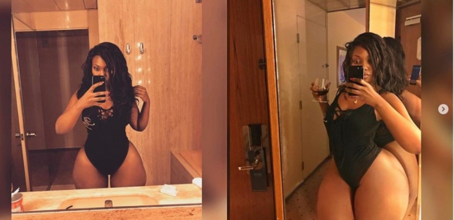 Endowed Tanzanian model, Sanchi, who is well known on social media for flaunting her jaw-dropping body, shared these new photos of herself posing in a black bodysuit which showcased her massive curves.