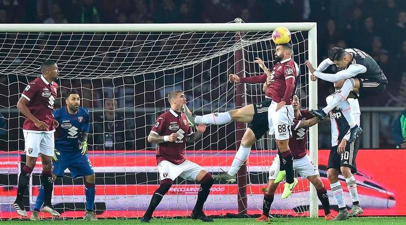 Juve’s first chance on goal fell to Cristiano Ronaldo, who failed to keep his diving header down after meeting Rodrigo Bentancur’s cross.