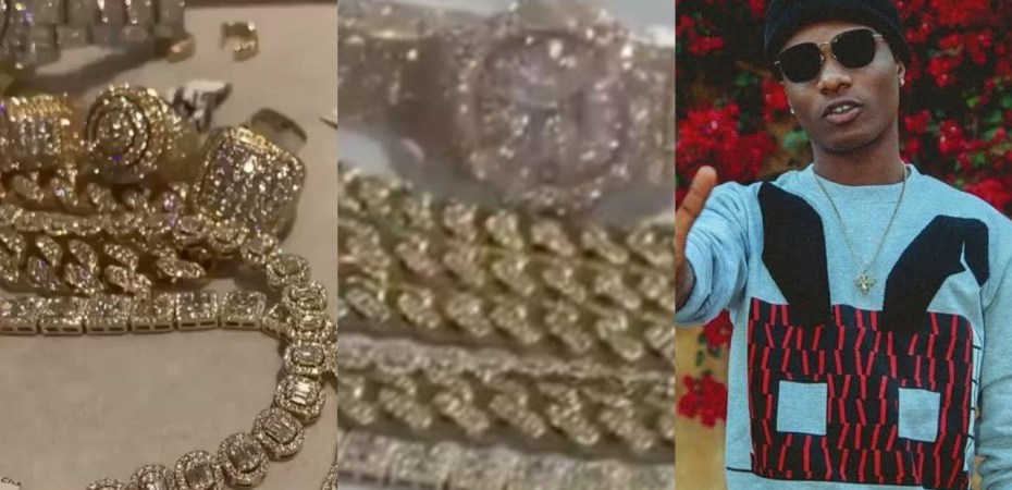 Nigerian singer, Starboy Wizkid is also living the luxury life; be it classic automobiles, designer wears, accessories, down to his meal and now showing off collections of expensive diamond wristwatch and necklaces that definitely cost millions!