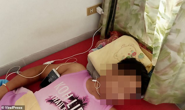 Police Colonel Warawach Thammasarot said: ‘The deceased was laid on the mattress with his phone and earphone[s] on him but we also found beer and fizzy drinks near him.