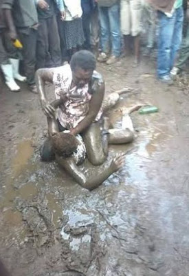 According to reports, the incident happened in Kogi. One found out the other was sleeping with her man and went to attack. Others just stood there enjoying the show…smh!