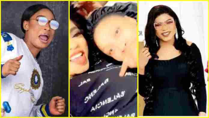 Nigerian actress and entrepreneur Tonto Dikeh is seen fondling with the boobs of her best friend and partner in crime Bob Risky. Bob Risky is a transgender who has undergone surgery to evolve into a woman.