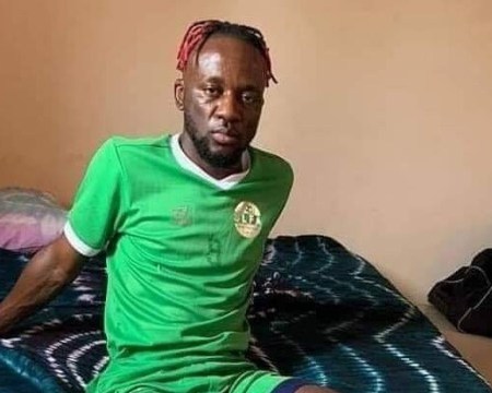 Sierra Leone striker Mohamed Buya Turay shows off his injured swollen feet he claims was caused by “juju” (Photo)