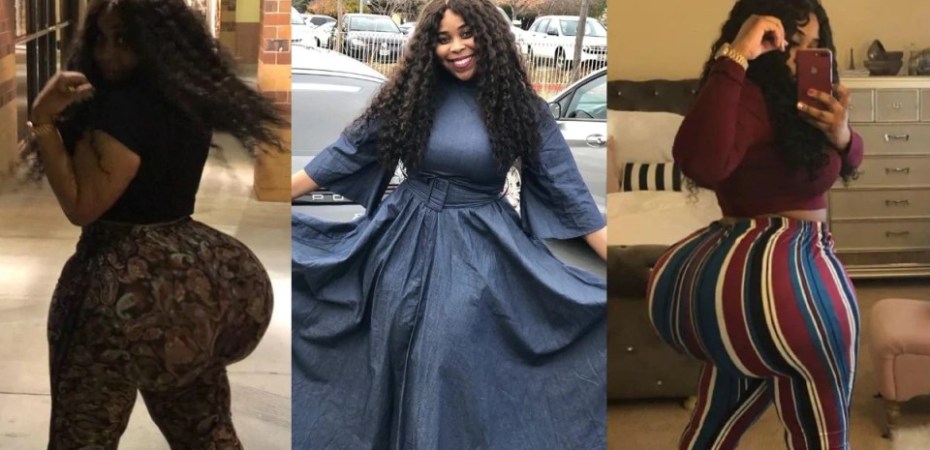Wearing a striped pair of trousers which hugged her body so tightly, the lady had her already humongous backside protruding.
