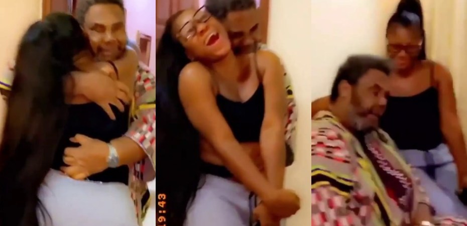 Veteran Nollywood actor Pete Edochie has lit social media with gossips after a video of him ‘awkwardly’ hugging actress Destiny Etiko surfaced online.